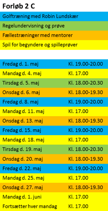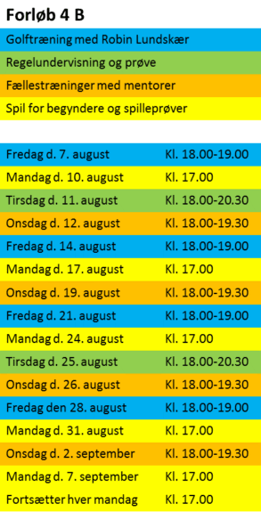 Ved få tilmeldinger vil forløb A+B bliver slået sammen, og træningstiderne med Robin Lundskær opdateret.